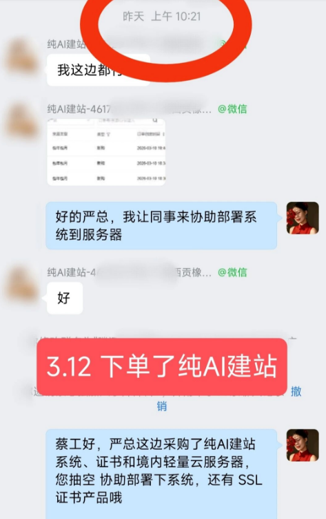 昨天上午10点多,客户在耐思官网下单了 纯AI建站系统网站产品。