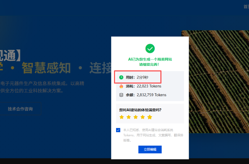 昨天上午10点,客户下单了AI建站产品,下午4点网站就完成了上线!